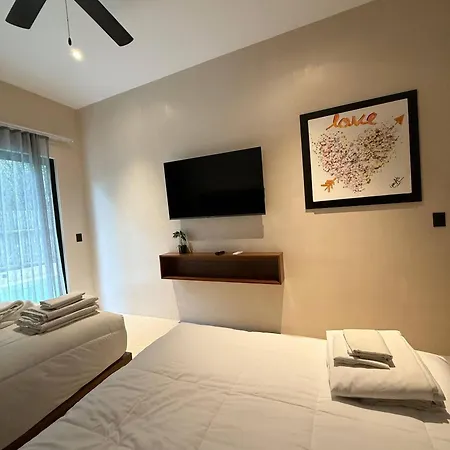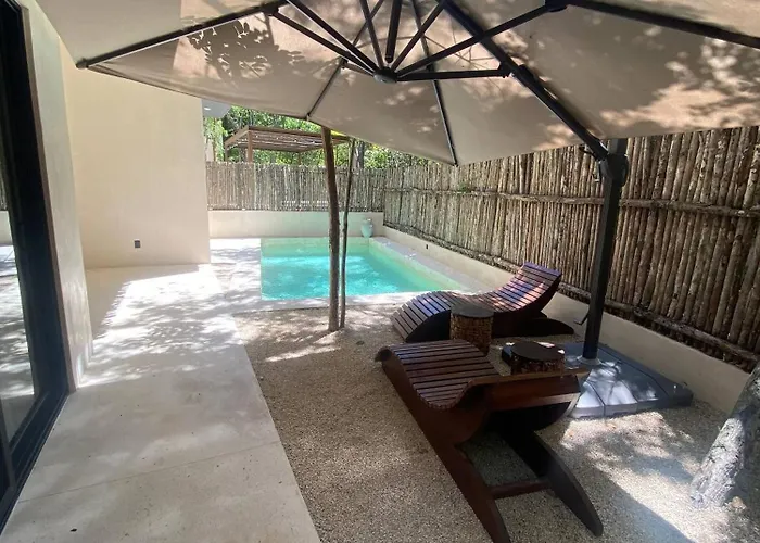 The spacious Great 3 Bedroom Apartment And Private Pool Tulum is situated in the Zama district, a 20-minute walk from the Pyramid of Positive Thinking, and features a fitness studio. Guests can make use of Wi-Fi for both business and leisure purposes.